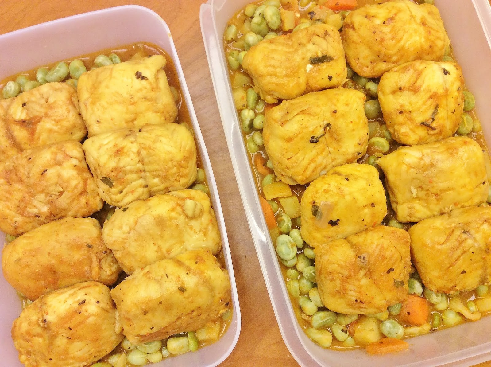 | Distribuir o preparado pelas forminhas com a massa (podem ainda estar quentes, não é preciso deixarem arrefecer completamente).