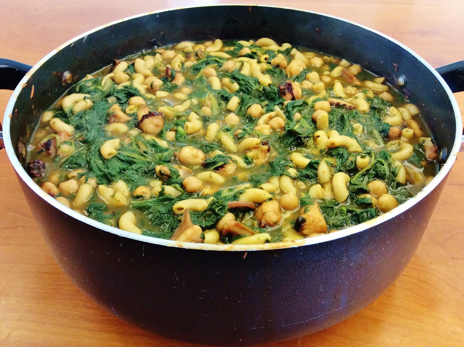 No dia, como de costume, fiz refogado a mais para a feijoada, e depois de triturar retirei metade para outro tacho. Neste adicionei a água de cozer o grão-de-bico e depois a pota em pedaços, seguida de nabiças. Quando as nabiças estavam quase cozidas acrescentei a massa, e quando a massa estava quase pronta também juntei o grão-de-bico. Mais uns minutos ao lume e estava a comida feita :)